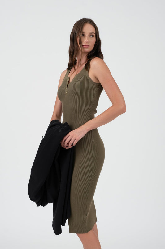 • Sleeveless Knit Midi Dress