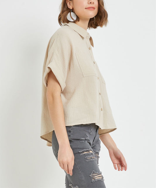 Button Down Cap Sleeve