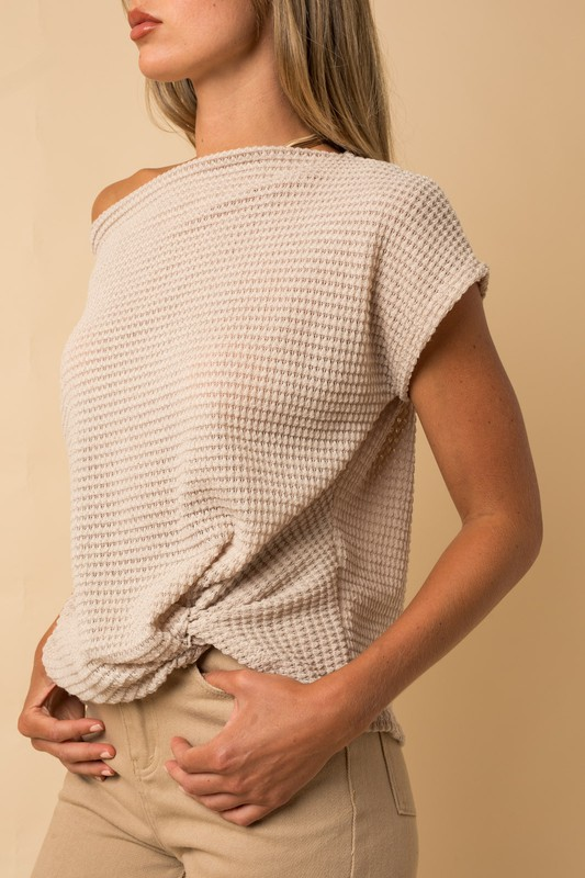 Front Twist Waffle Knit Top